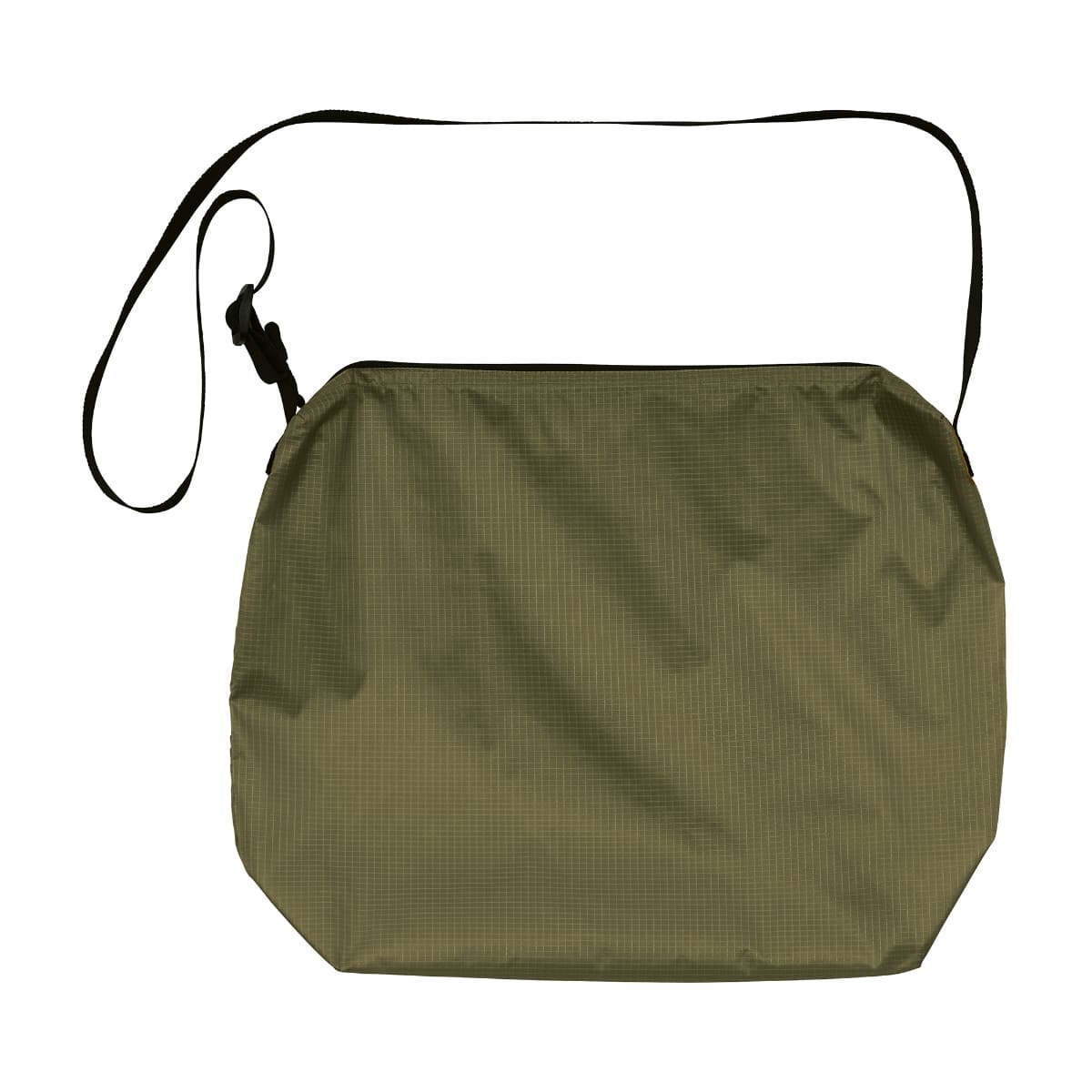 ナイロンのリップストップ生地でつくられた、軽量ショルダーバッグ。裏側にアクリルコーティングを施しているため、薄手ながらハリコシのある素材感はもちろん、耐久性にもすぐれたアイテム。袋口は防犯面でも安心なファスナー仕様。ショルダーテープの長さはアジャスターで調節可能なため、サイクリングやスケートボードなど、激しく動き回るスポーツシーンでも体にぴったりフィットさせて使うことができます。マチありで意外と大容量&プレーンなデザインで、さまざまなシーンでの活躍が期待できるバッグです。