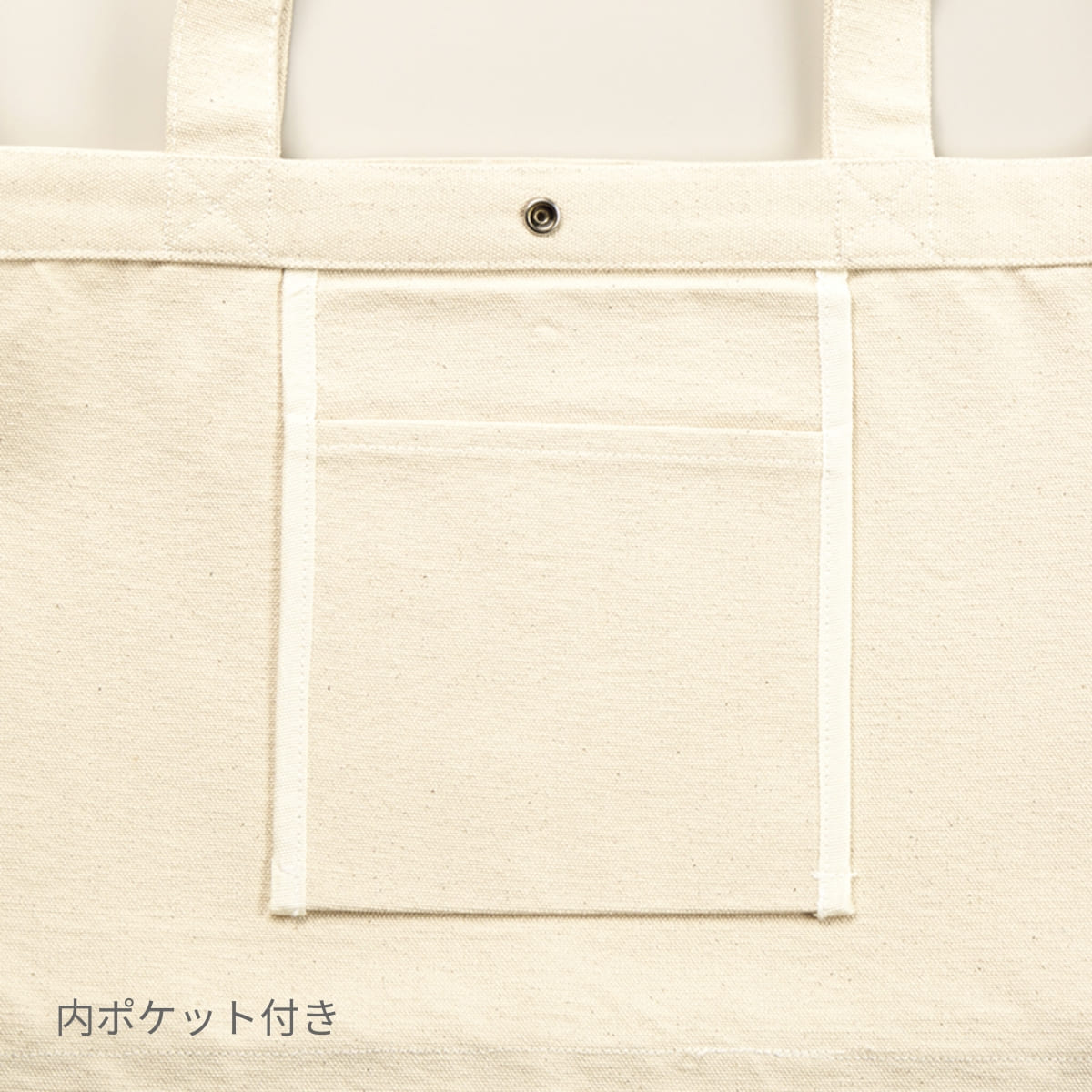 重たいものを入れても安心感のある丈夫なキャンバス生地です。うれしい内ポケット付き。