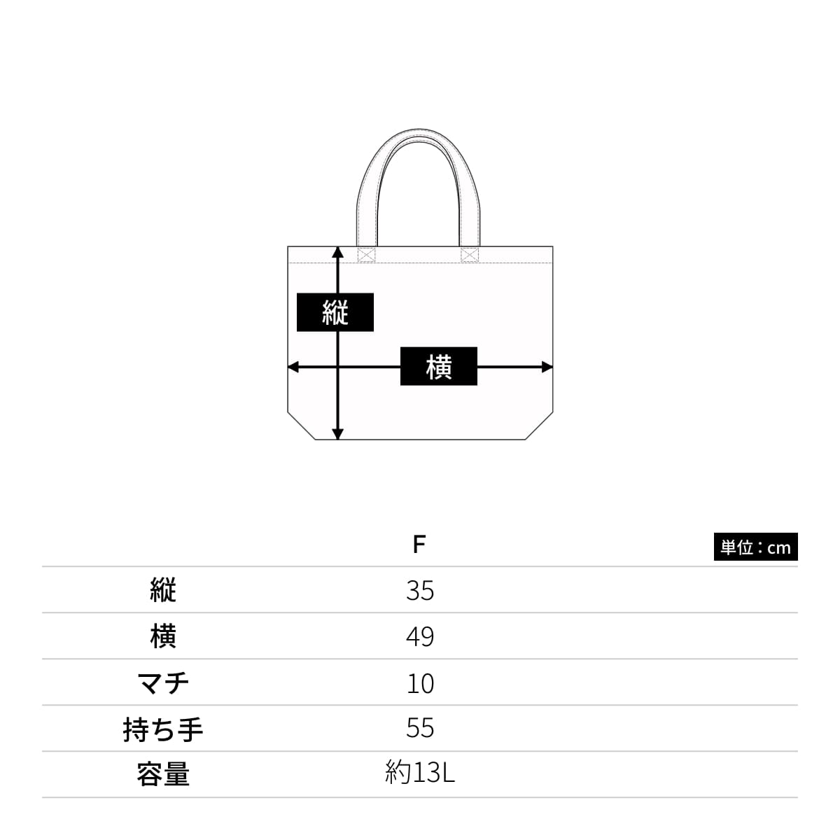 長い持ち手で肩掛けがしやすい、13Lの大容量トートバッグ。