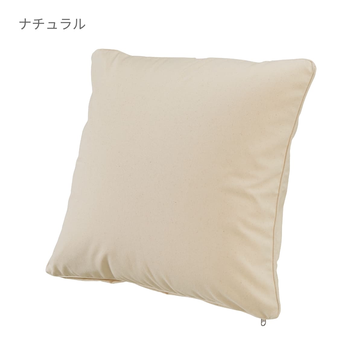 定番サイズのクッションカバー。綿100%でほどよい厚みのキャンバス生地は使い込むほどにやわらかくなり、独特の経年変化を楽しめます。プレーンなデザインなので、幅広いスタイルのインテリアに絶妙にマッチ。お好みの中材でお楽しみください。