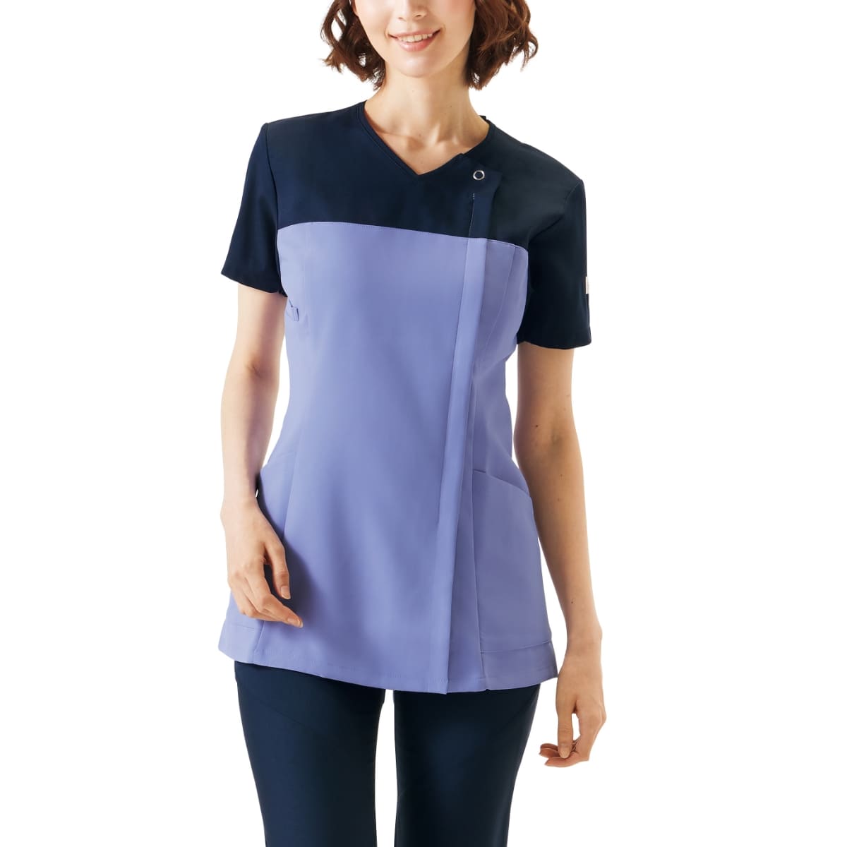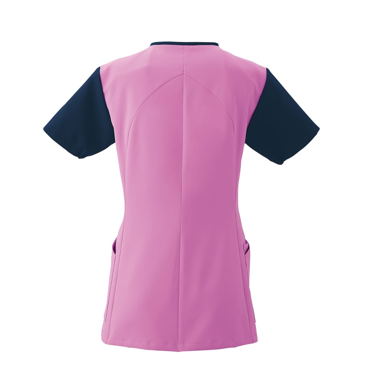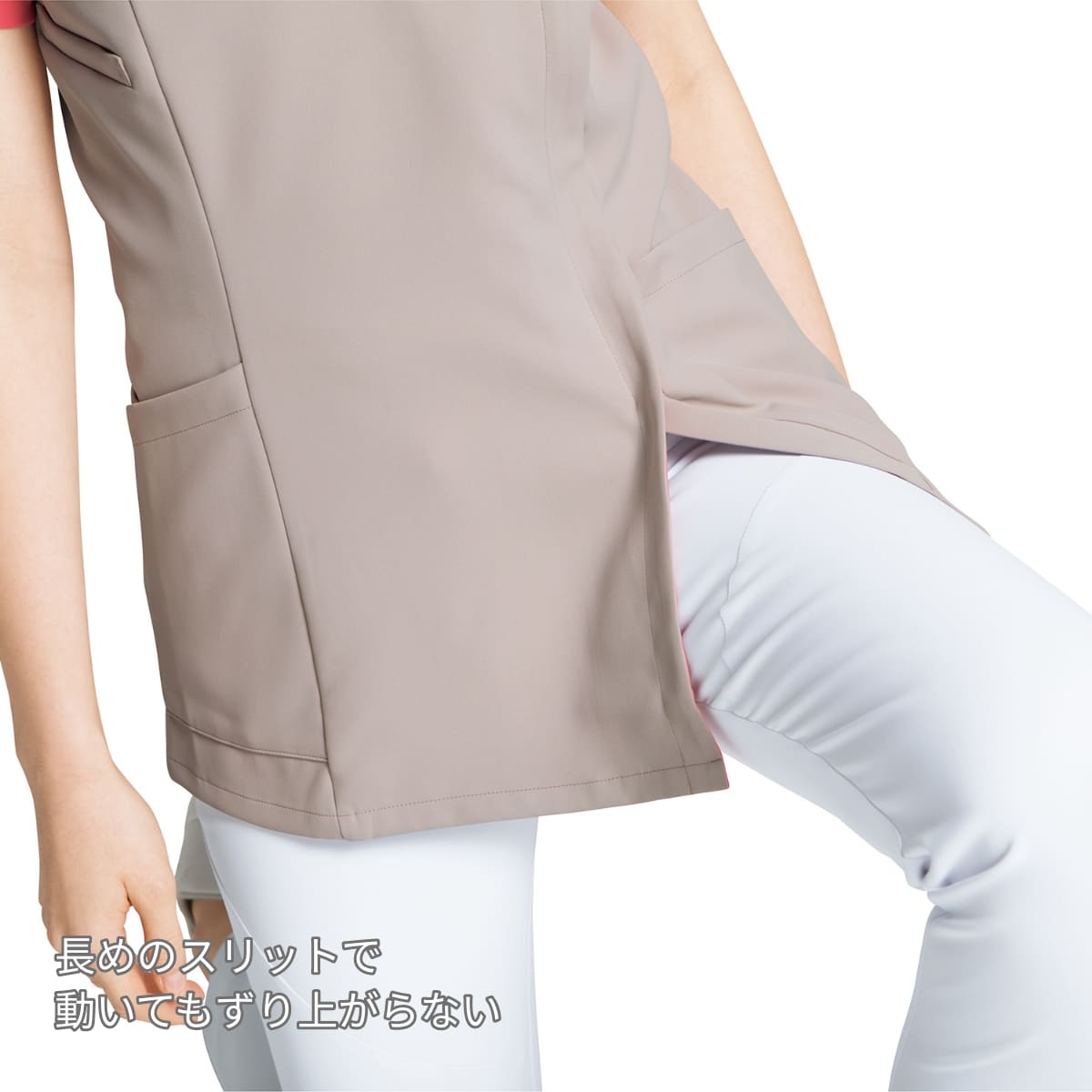 - 同素材のレディスジップスクラブ(5分袖)(Wacoal HI collection)(HI708)