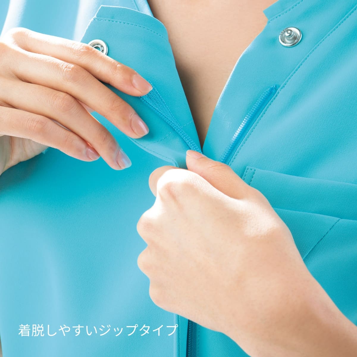 - 同素材のレディスジップスクラブ(5分袖)(Wacoal HI collection)(HI708)