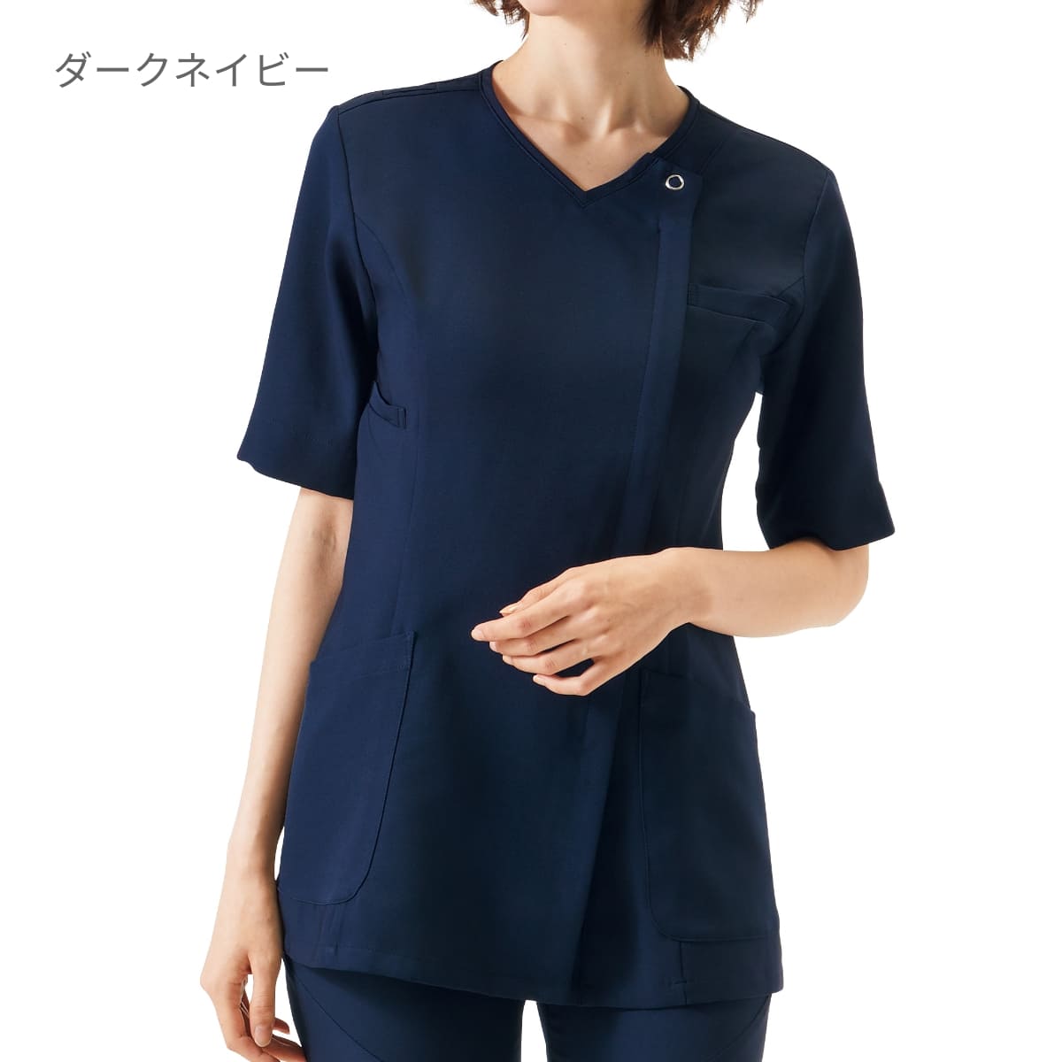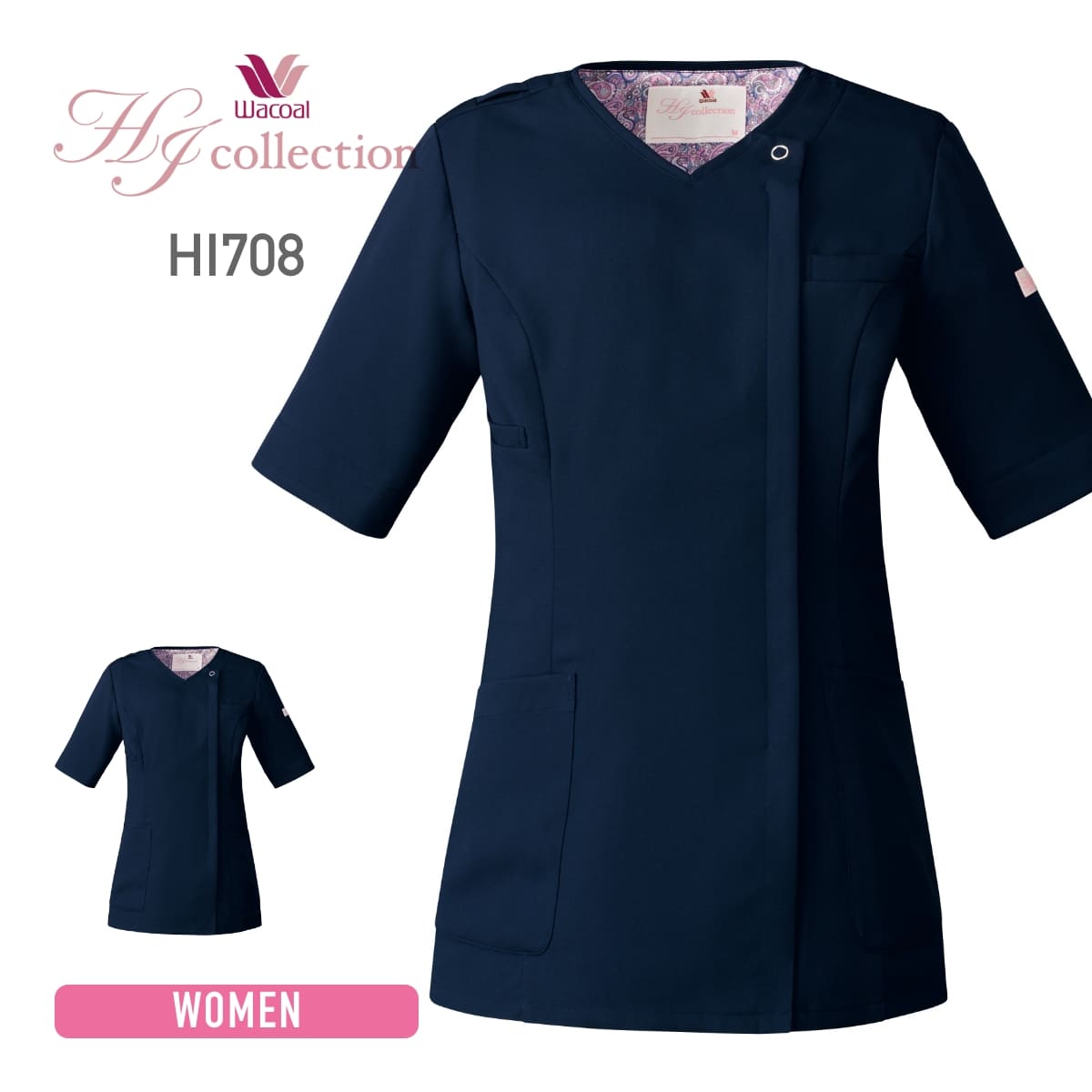 レディスジップスクラブ(5分袖)(Wacoal HI collection) | メディカルウェア | 1枚 | HI708 | ダークネイビー