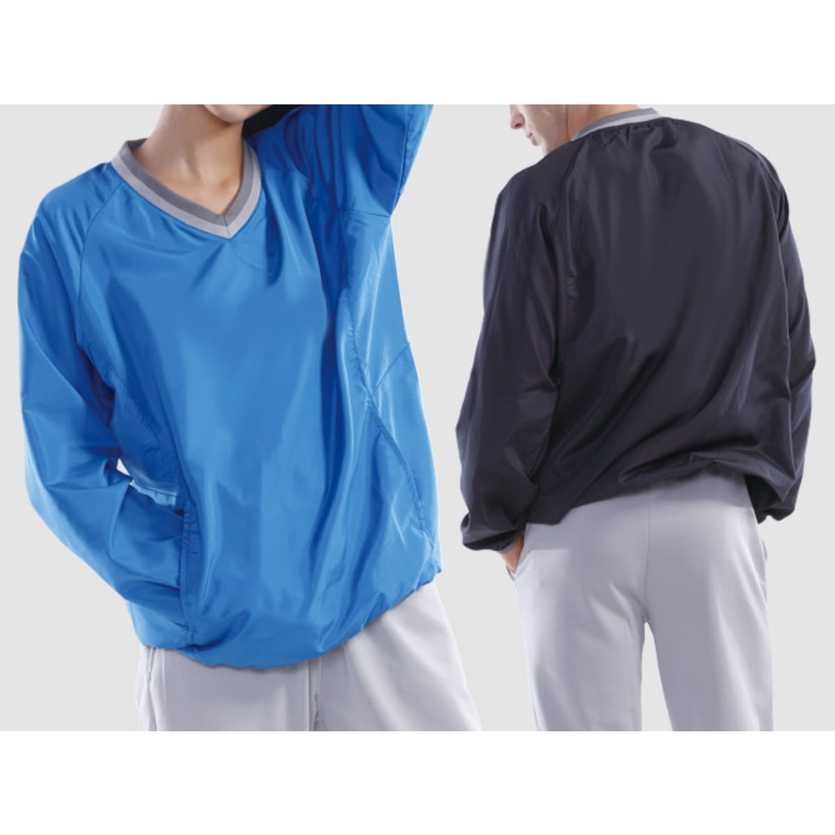 ポリ100%の布帛生地のためシャカシャカせず、しなやかで軽い素材に加えてラグラン袖で動きやすいのが特徴。
