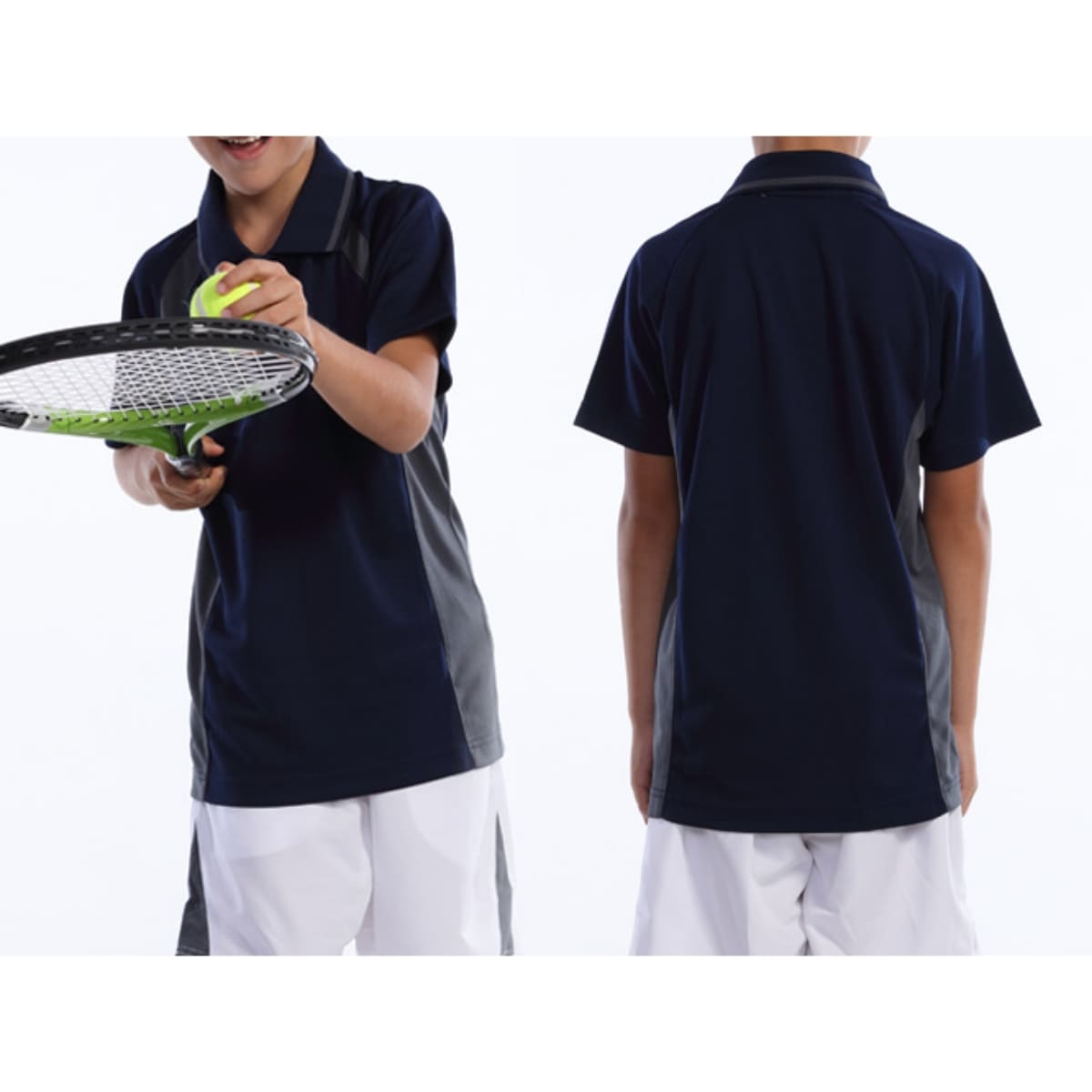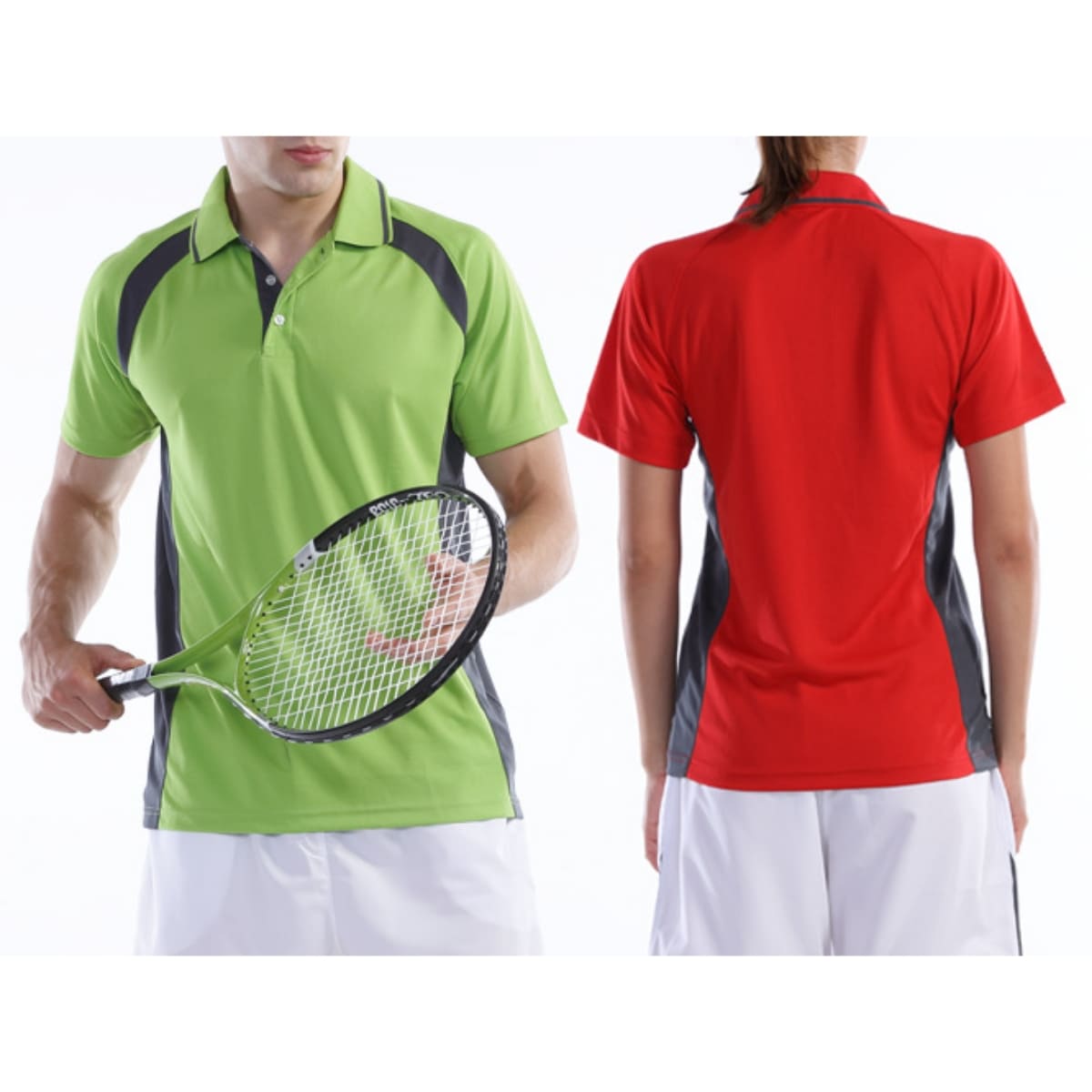 吸汗速乾ポリ100%、ソフトな素材で着心地のよいテニスシャツ。ラグラン切替デザインのスポーツポロタイプです。