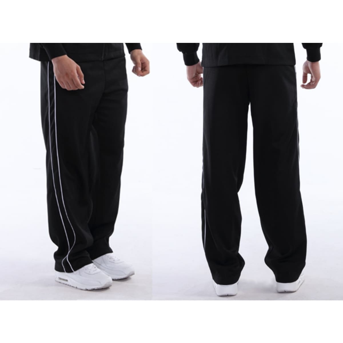 サイドパイピングラインにストレートシルエットの、オーソドックスなデザインのジャージトレーニングパンツ。