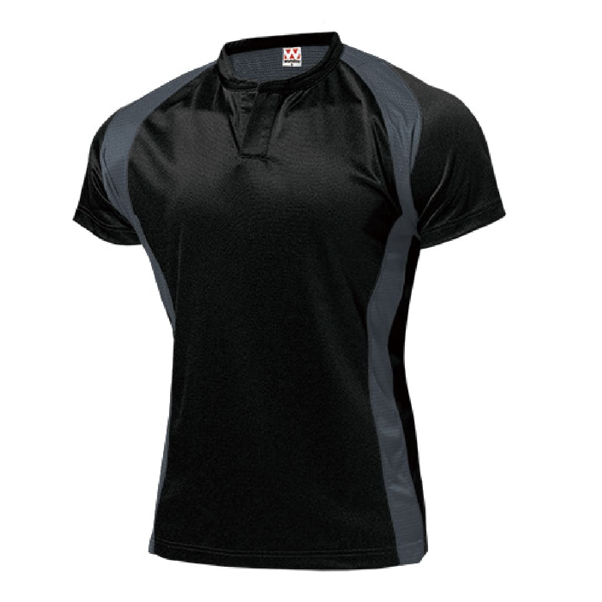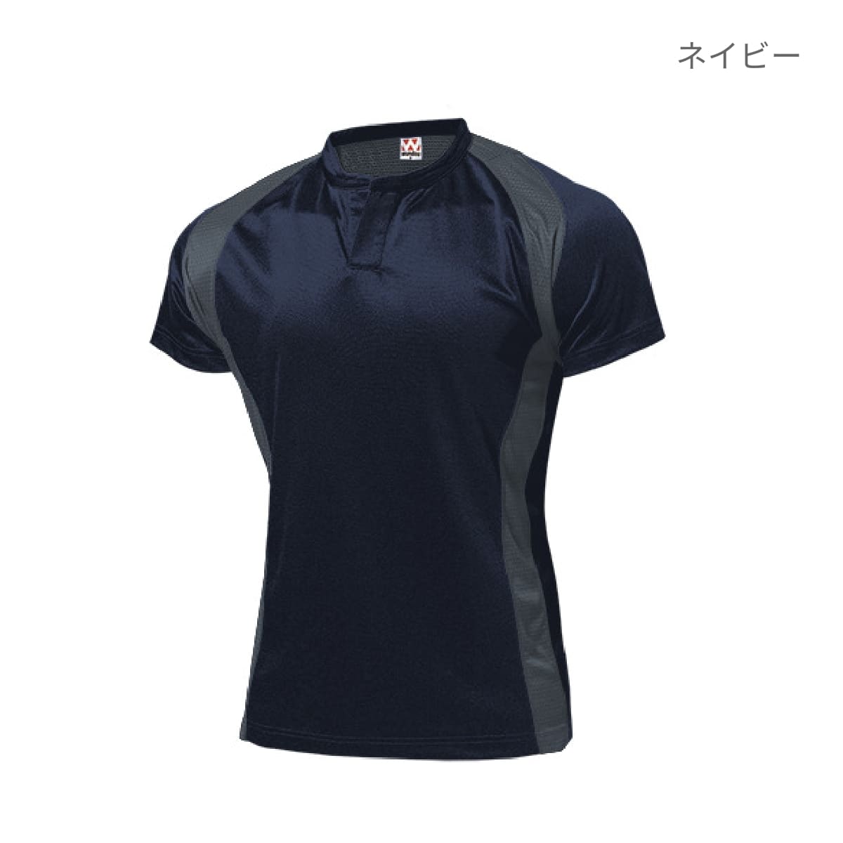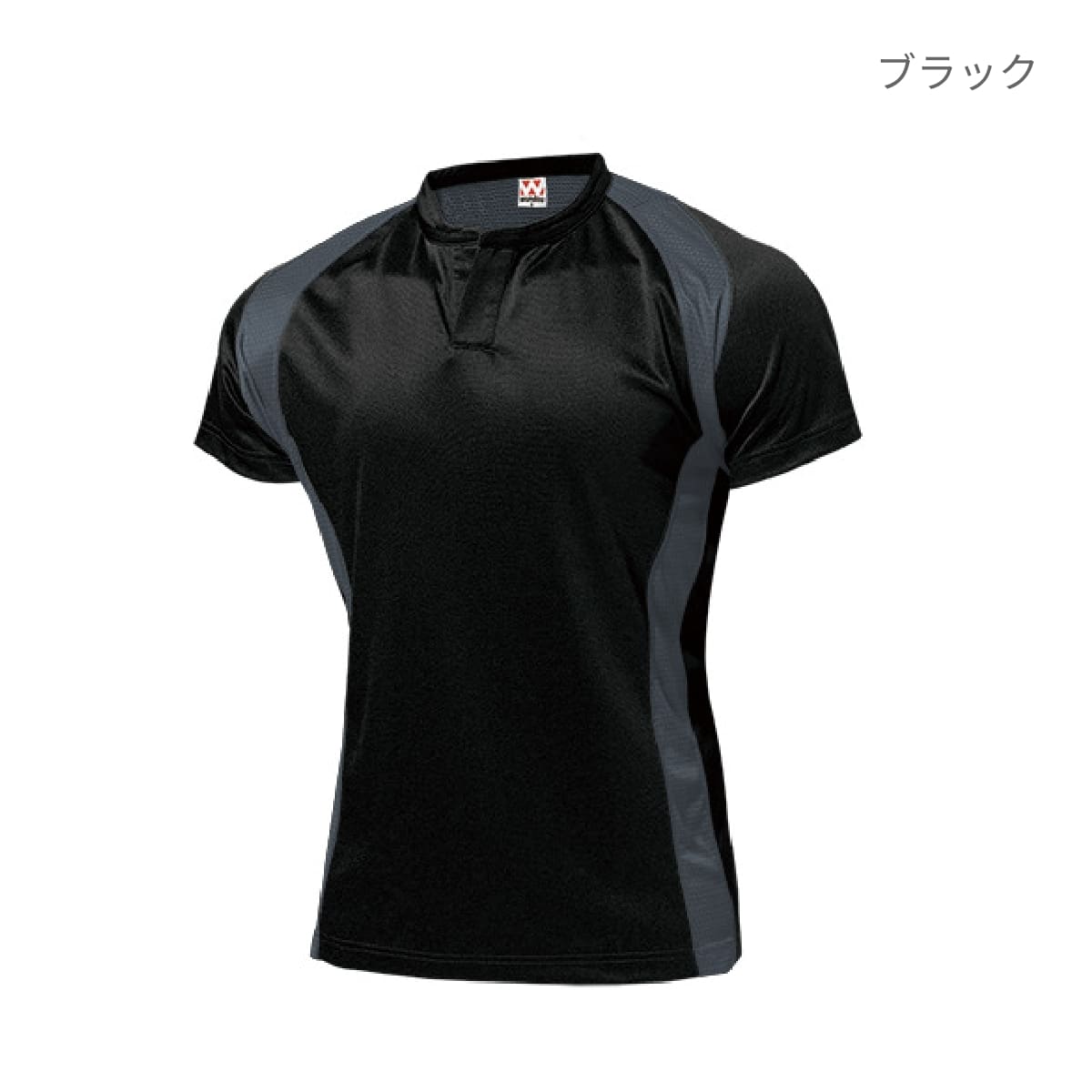 ラグラン切替、立ち衿のボタンなしヘンリーネックでラグビーらしさのあるデザイン。