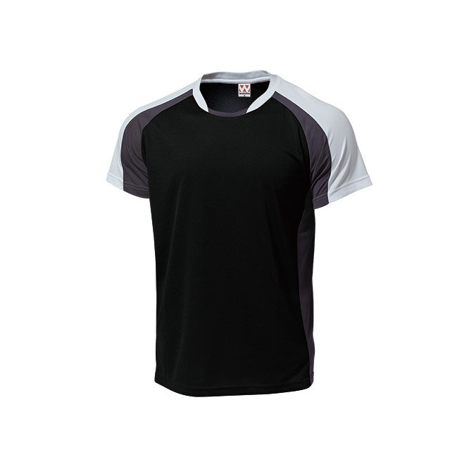 デザイン衿とラグラン切替デザインでスポーティに仕上げたTシャツです。
