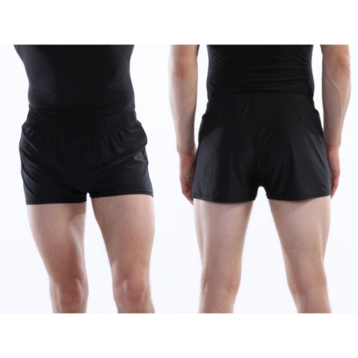 ナイロン84%、ポリウレタン16%の吸汗速乾素材を使用。高いストレッチ性と光沢感のある男子体操パンツです。