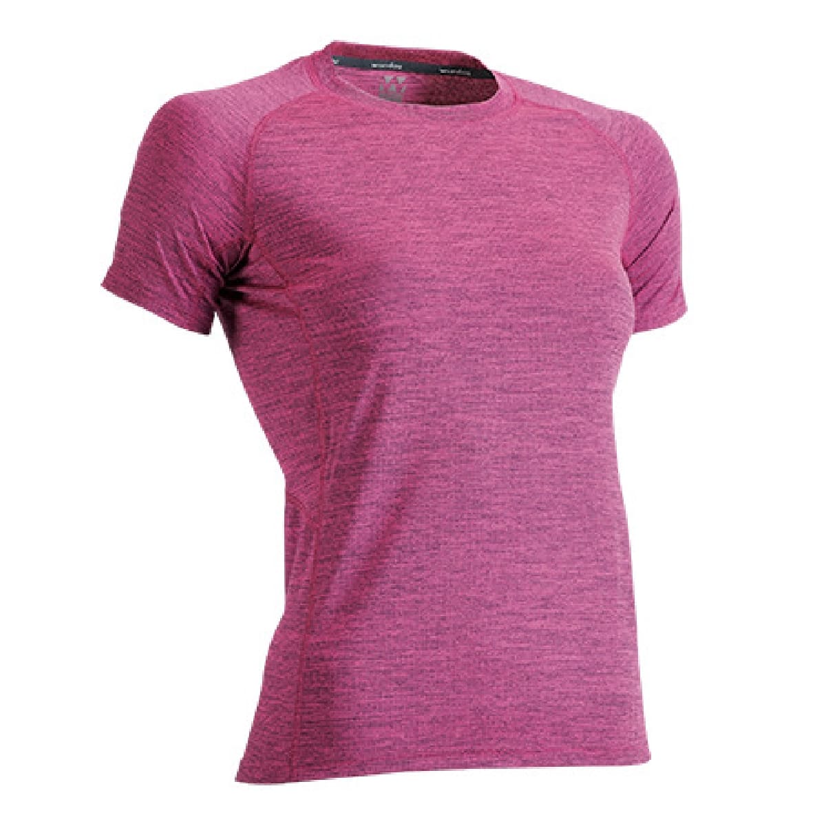 吸汗速乾素材を使用した、UPF(紫外線遮蔽率)30のフィットネスTシャツ。ラグラン袖で動きやすく、ウエスト周りを細く絞ったフェミニンなラインで体にほどよくフィットします。ダークなミックスカラーは年齢を問わず幅広いニーズに対応します。