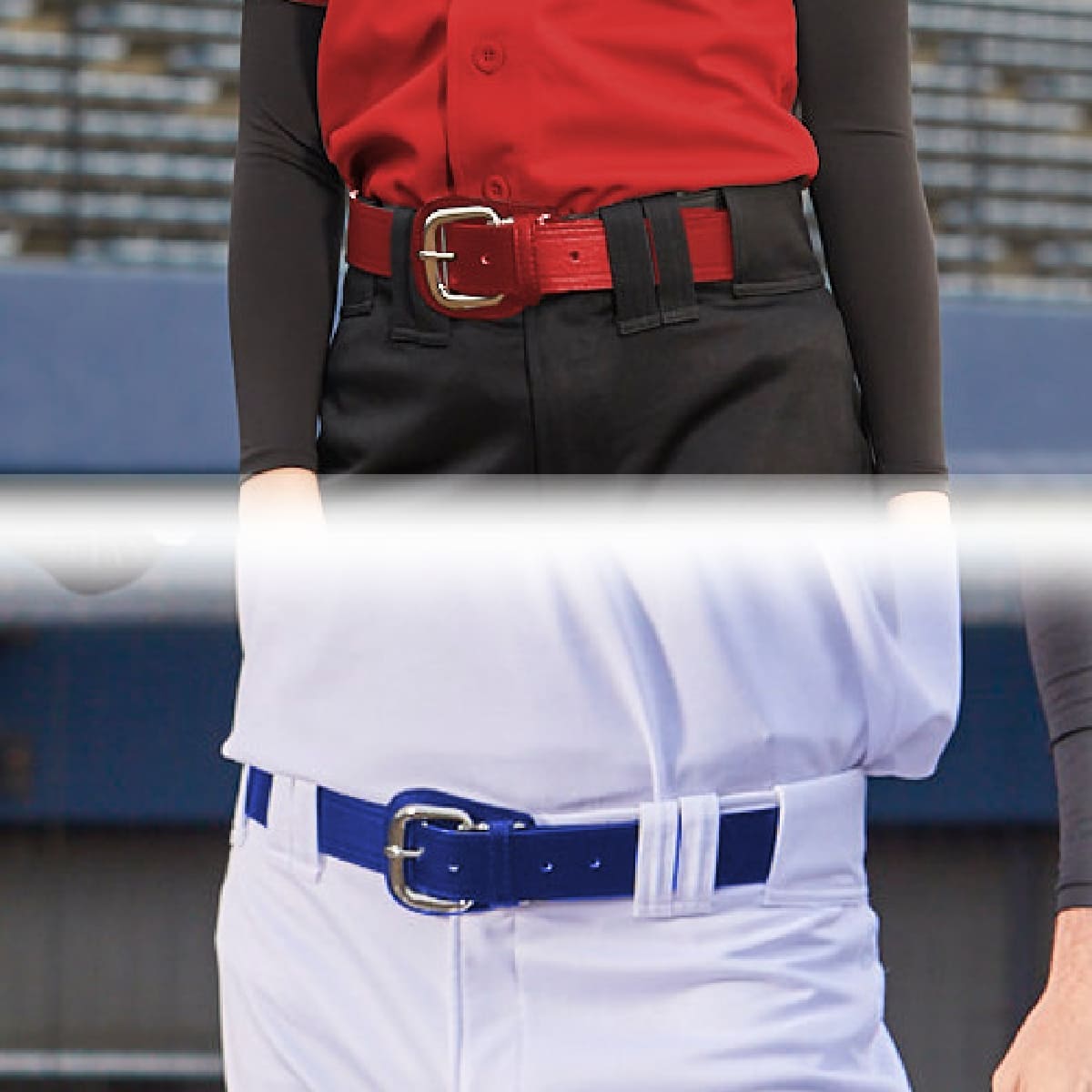高級感のある人工皮革、質感の良いバックルのベースボールベルト。