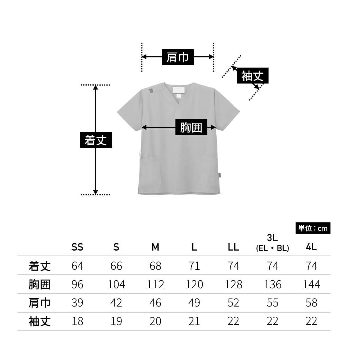 | 着丈 | 64 | 66 | 68 | 71 | 74 | 74 | 74 |