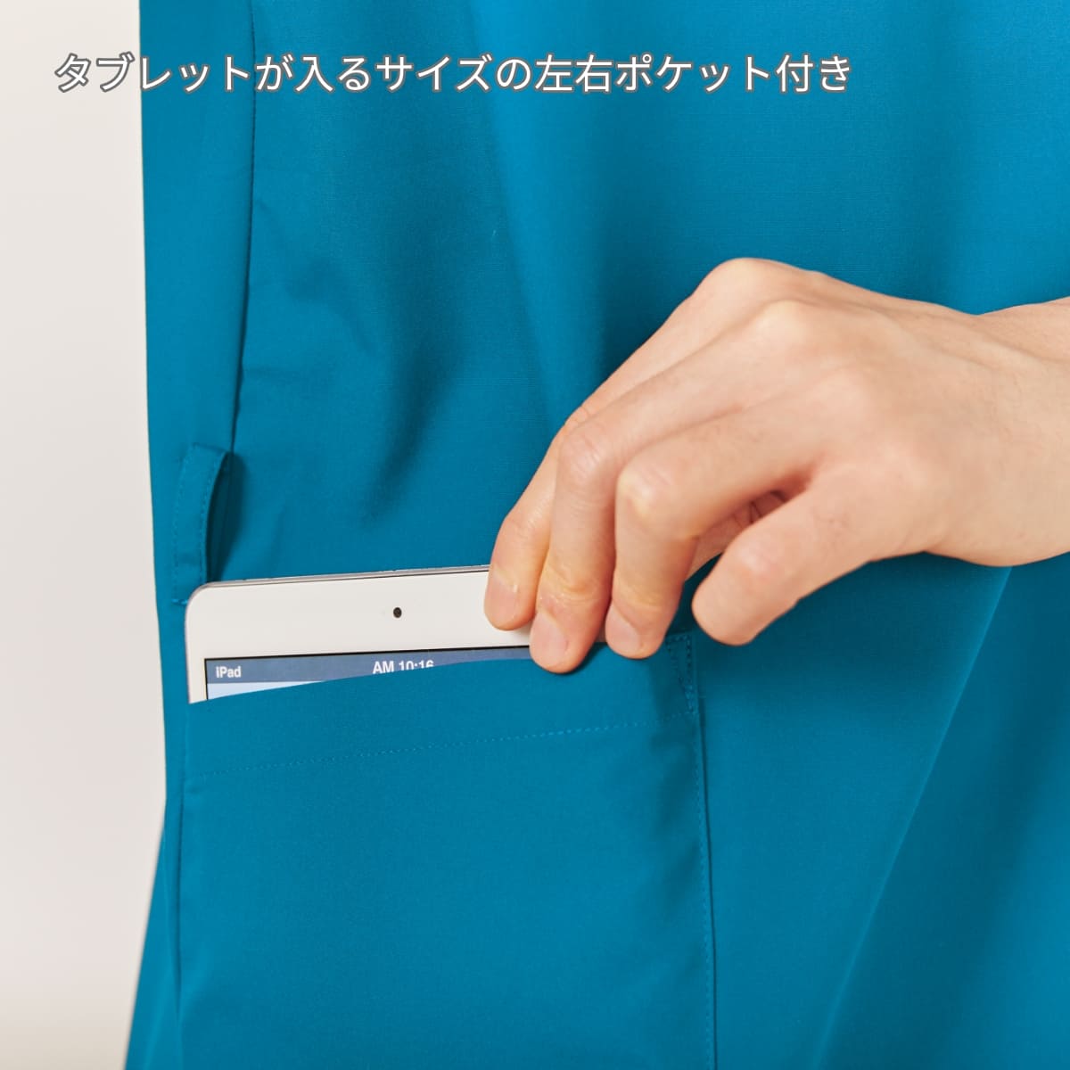 病院ではリネン洗濯を依頼するところが多く、厚生省の手引きに書かれた80℃ 10 分の熱水で殺菌処理をするという対処が可能ですが、歯科医院や個人クリニックなどリネン業者に洗濯を依頼できないケースにおいては、次亜塩素酸ナトリウムへ浸染による殺菌消毒がほとんどの感染症に対して有用とされています。( ポリオなど消毒液に耐性のある細菌もある) フォークでは、すべての医療従事者に等しく業務上の安全を確保したく、次亜塩素酸ナトリウム(ハイターやブリーチなど)の消毒・滅菌にも対応するスクラブを開発。豊富なカラー展開とシンプルなデザインで幅広い年代や職種の方に着用いただける、カラフルなのに色落ちしない男女兼用スクラブです。